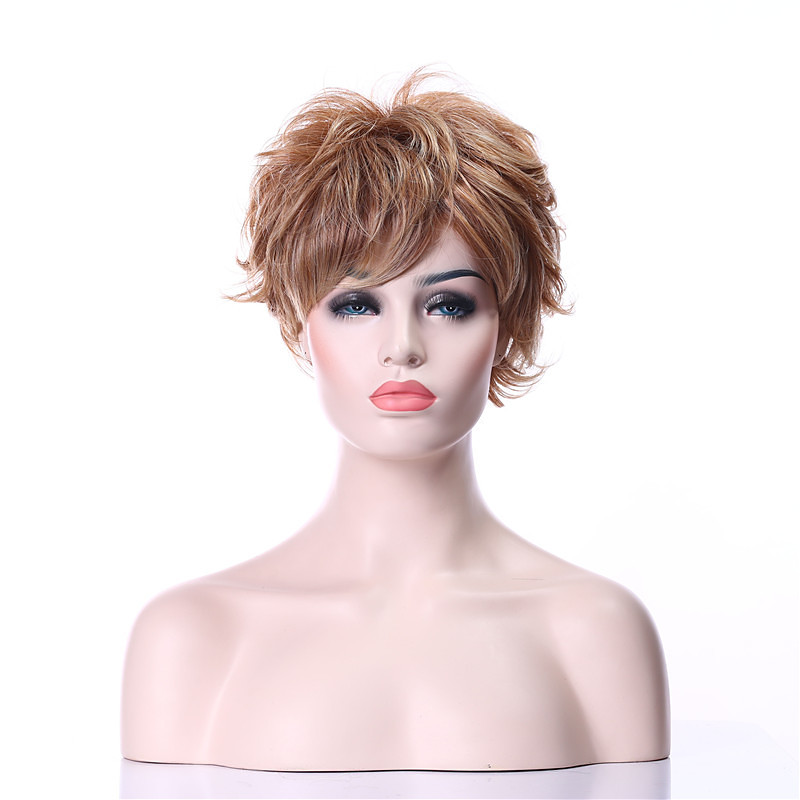 Mens Short Wig Curly With Bangs Wig Short Brown Grey Blonde Synthetic Hair Women's Blonde Brown Gray