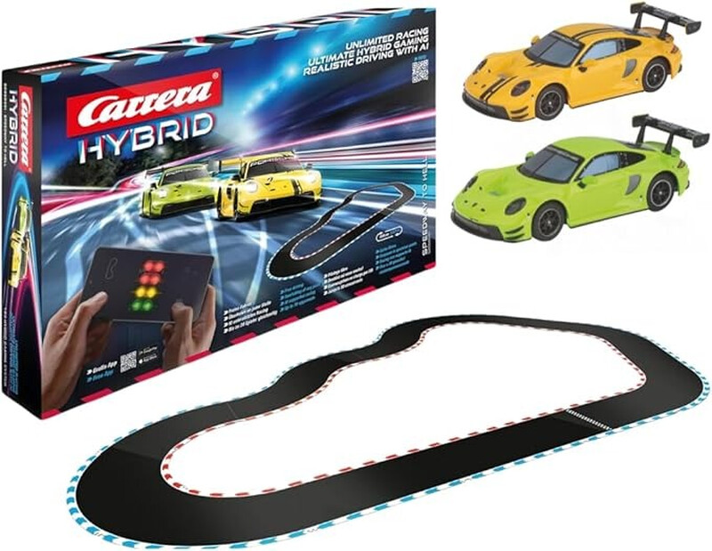 Carrera Hybrid Speedway to Hell I Rennspaß der neuen Generation - Legendäre Rennwagen Porsche 911 GT3 R im Maßstab 1:50 - Hybrid-Technologie mit KI-Unterstützung - Steuerung über Smartphone-App