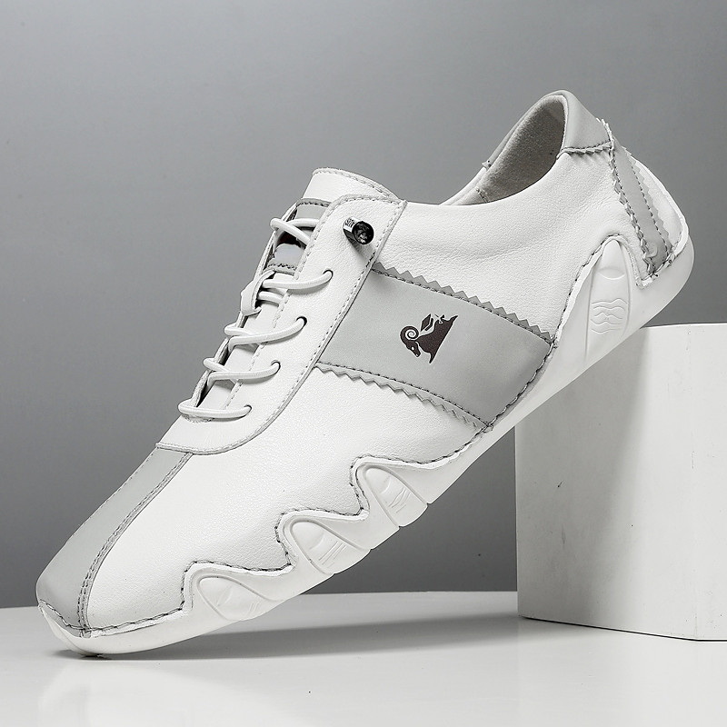 Men's White Faux Leather Lace-Up Casual Shoes - Stylish Low-Top Sneakers with Comfortable Sole for Daily Wear