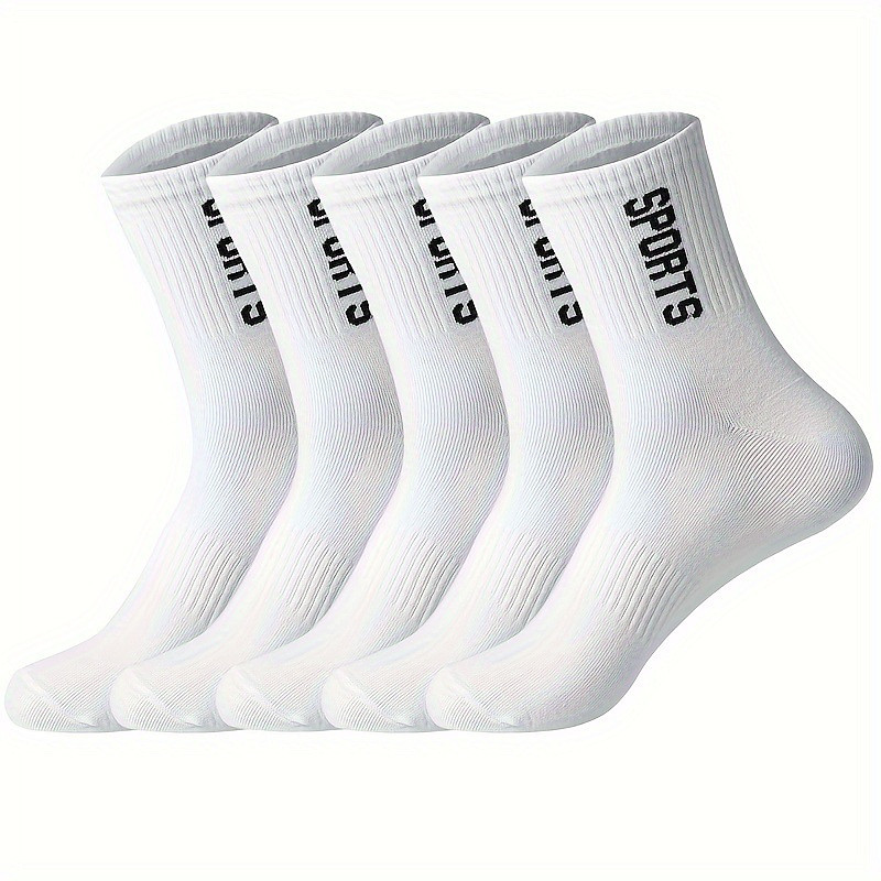Men's 5 Pairs Multi Packs Socks Running Socks Casual Socks Black White Color Letter Sports Outdoor Daily Vacation Basic Medium Spring Fall Fashion Casual
