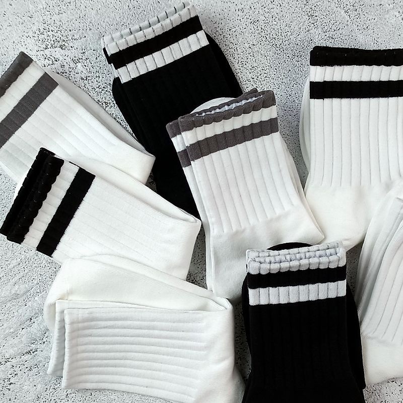 Men's 5 Pairs Multi Packs Socks Running Socks Casual Socks Black White Color Plain Vacation Sports Outdoor Daily Basic Medium Spring Fall Fashion Casual