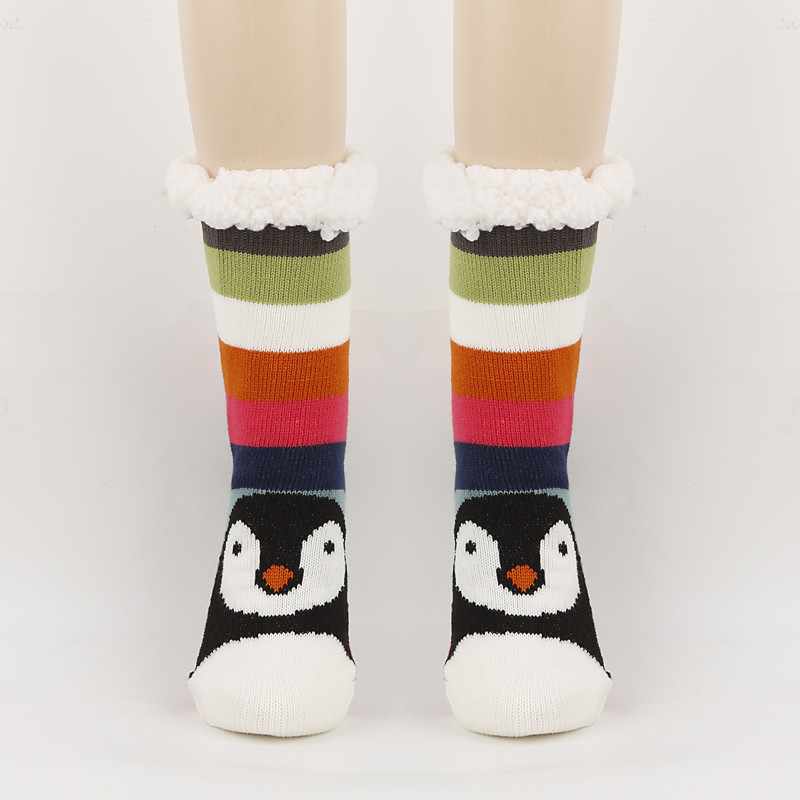 Christmas Women's Slipper Socks, Cartoon Coral Fleece Plush Crew Socks, Mid-Calf Fluffy Floor Socks, Christmas Holiday Cross-Border Edition