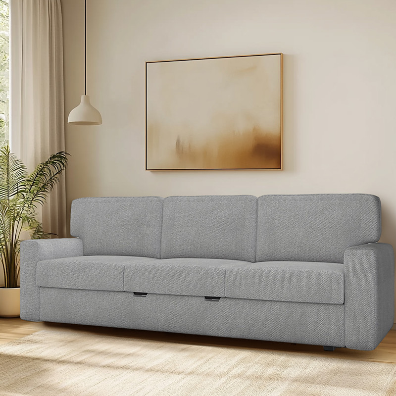 Dmora Festes Sofa Julia, 3-Sitzer-Sofa, 100% Made in Italy, Sofa-Wohnzimmer, aus gepolstertem Stoff, Cm 220x95h85, Beige