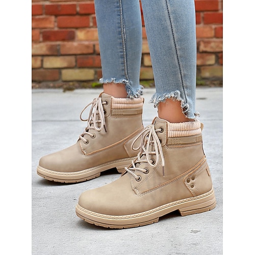 stivaletti classici con lacci da donna: stivali da lavoro resistenti in stile combattimento per outfit casual autunnali, invernali e all'aperto