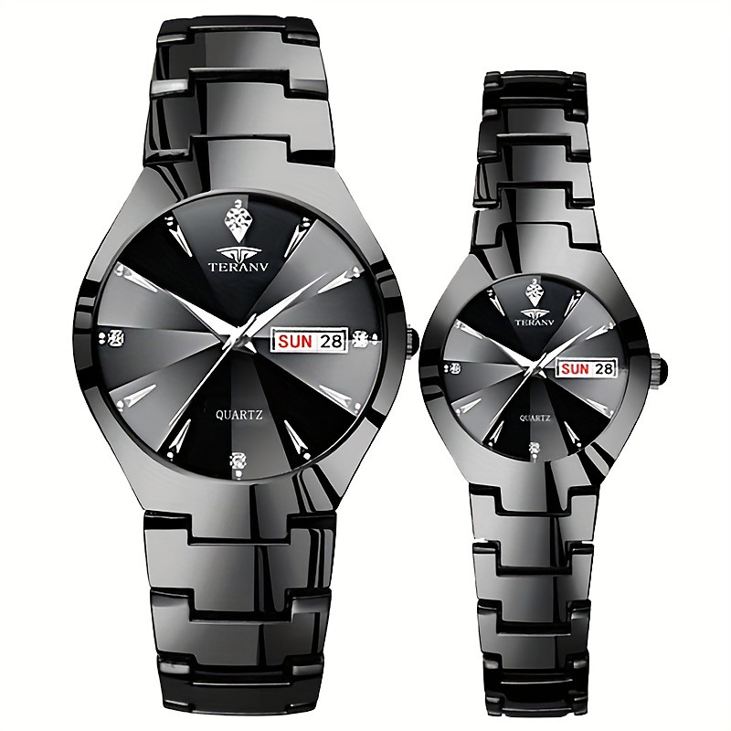 Two Round Dial Luminous Couple Watch Ipx7 Waterproof Quartz Watch Calendar Date Fashion Stainless Steel Business Watch For Women Men Dating Valentine'S Day Gift Watch
