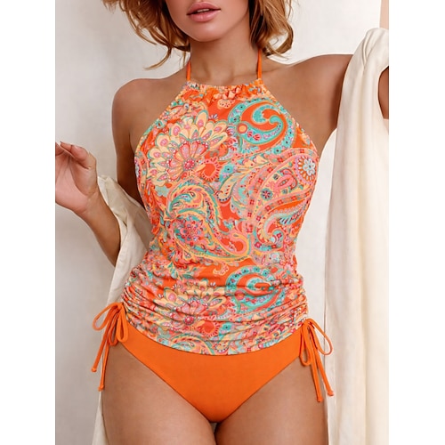 Per donna Costumi da bagno Tankini Due pezzi Birichino Costume da bagno Coulisse Vacanza Abbigliamento da Spiaggia Floreale Grafico All'americana Senza Maniche Costumi da bagno