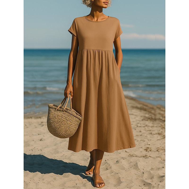 Women's Long Dress Maxi Dress Cotton Linen Dresses Casual Dress Swing Dress A Line Dress Streetwear Maxi Vacation Street Holiday Loose Fit Short Sleeve V Neck Yellow Pink Dark Blue Light Blue Summer