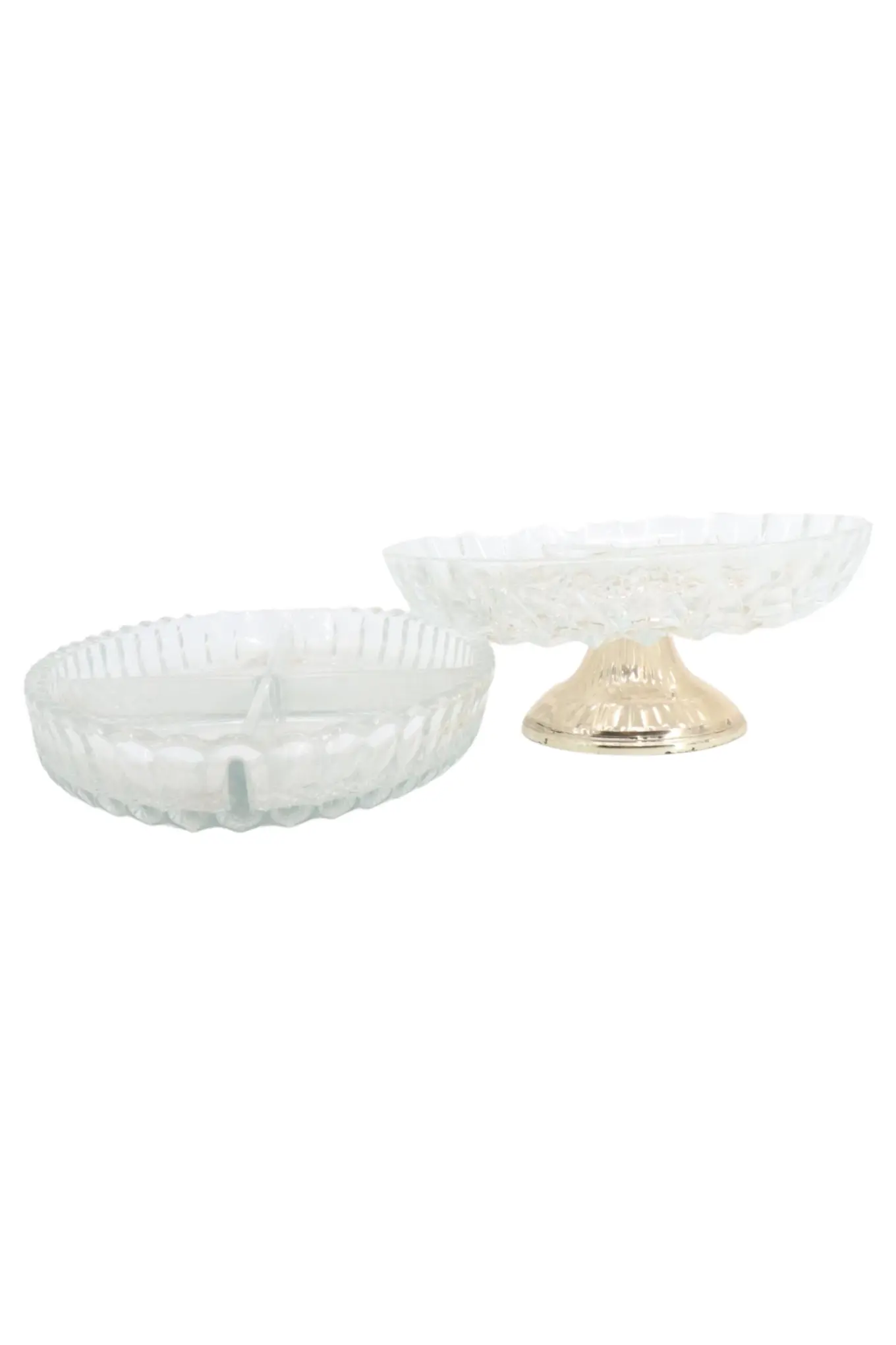 Servierset Glas Transparent Ø 21 cm 2 Teile Elegant Tischdeko