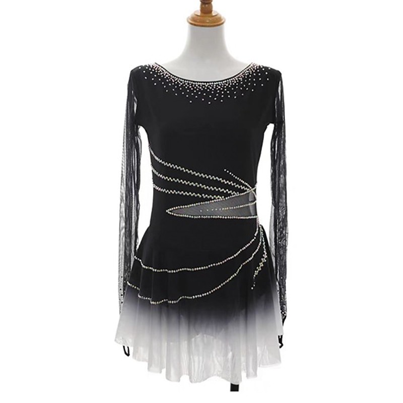 Figure Skating Dress Women's Girls' Ice Skating Dress Black White Blue White Thumbhole Halo Dyeing Mesh Spandex Stretchy Training Practice Professional Skating Wear Thermal Warm Classic Crystal