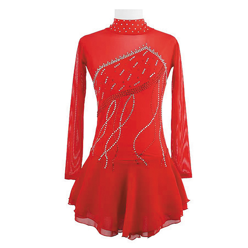 Eiskunstlaufkleid Damen Mädchen Eislaufen Kleid Rot Patchwork Daumenloch Netzstoff Spandex Dehnbar Training Übung Professionell Eiskunstlaufkleidung Thermowarm Kristall / Strass Langarm Eislaufen