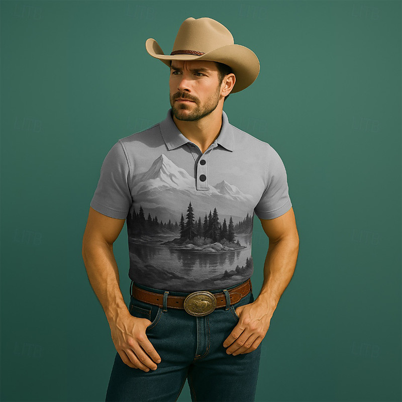 Men's Tree Mountain Polo Short Sleeve Polo Shirts Collared Shirts Casual Western Style Outdoor Athleisure Daily Wear 3D Print Summer Black Blue Purple