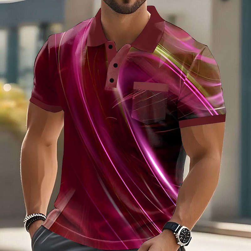 Men's Geometric Pattern Polo Short Sleeve Polo Shirts Collared Shirts Casual Outdoor Athleisure Daily Wear Pocket 3D Print Buttons Summer Red Blue Purple