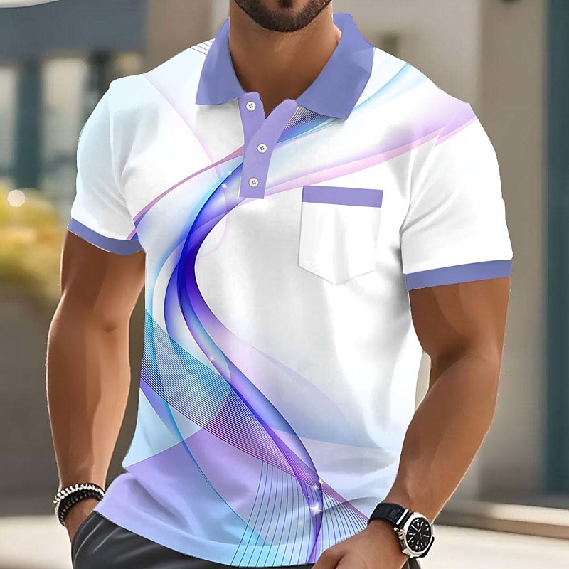Men's Geometric Line Polo Short Sleeve Polo Shirts Collared Shirts Casual Outdoor Athleisure Daily Wear 3D Print Buttons Summer Spring Blue Yellow Purple