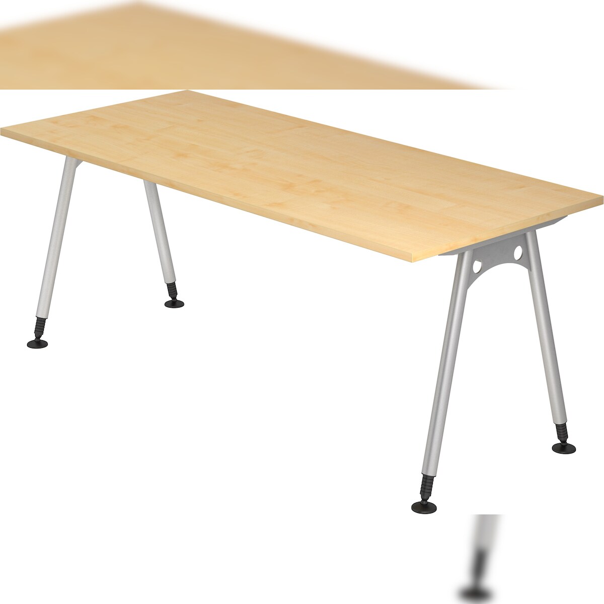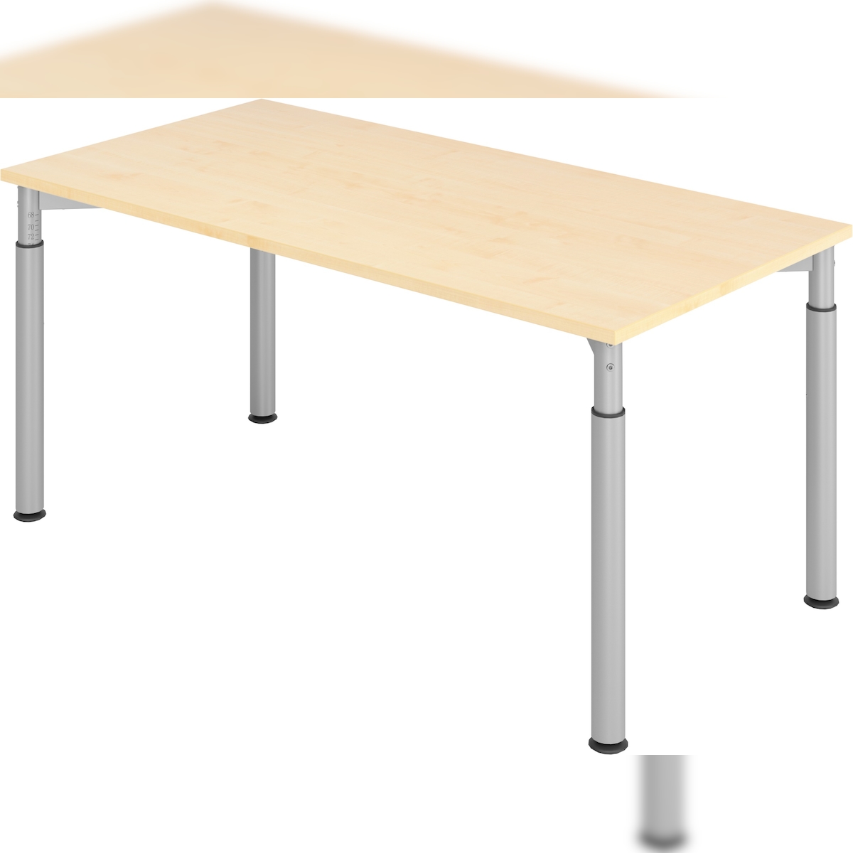 bümö höhenverstellbarer Schreibtisch 160x80 cm in Ahorn, Gestell silber - PC Tisch höhenverstellbar & groß, höhenverstellbarer Tisch Büro, großer