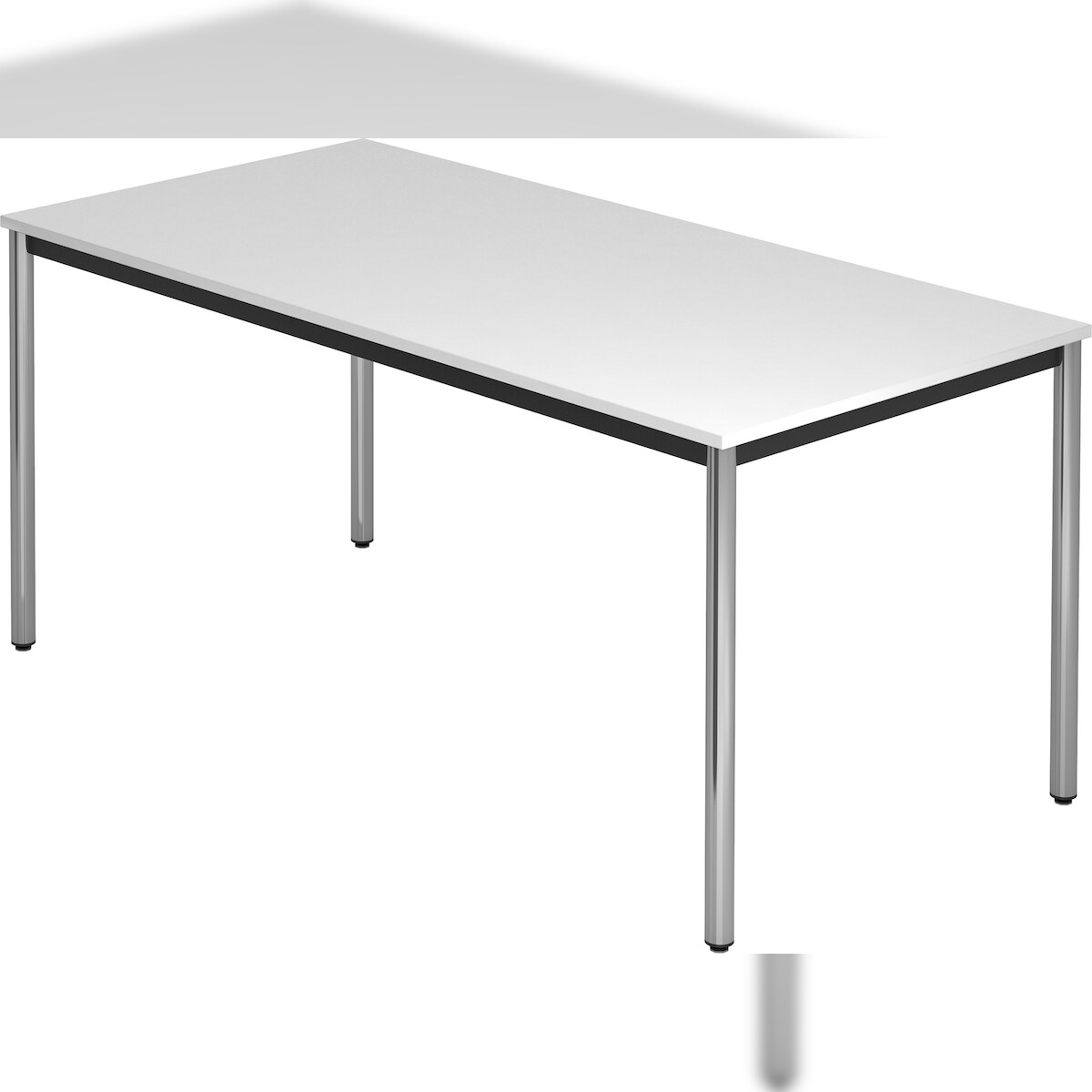 bümö Multifunktionstisch weiß, Tisch 160 x 80 cm, Tischfuß verchromt - einfacher Tisch, Besprechungstisch System D-Serie, Konferenztisch,