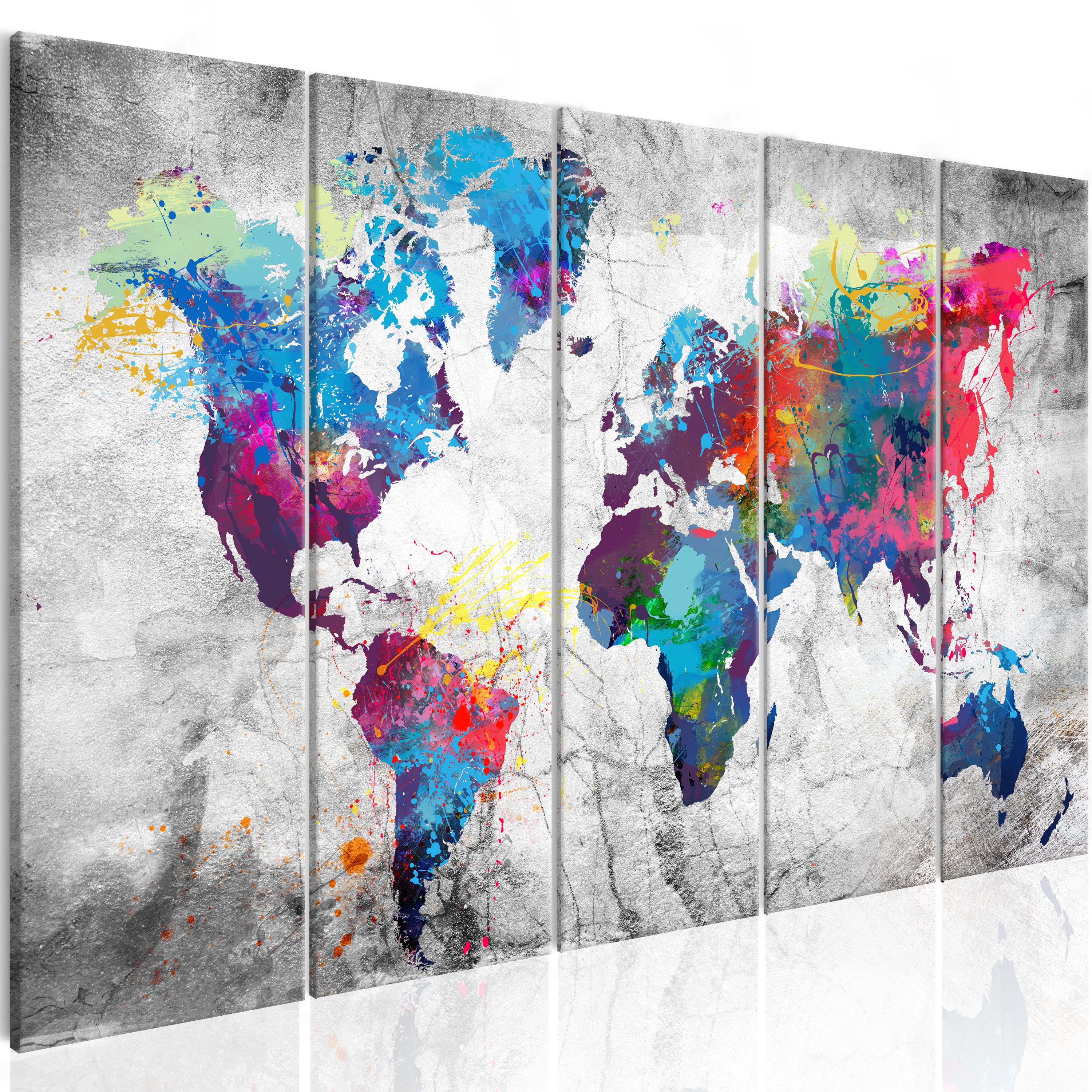 Billede - World Map: Colourful Ink Blots - 200 x 80 cm - På italiensk lærred