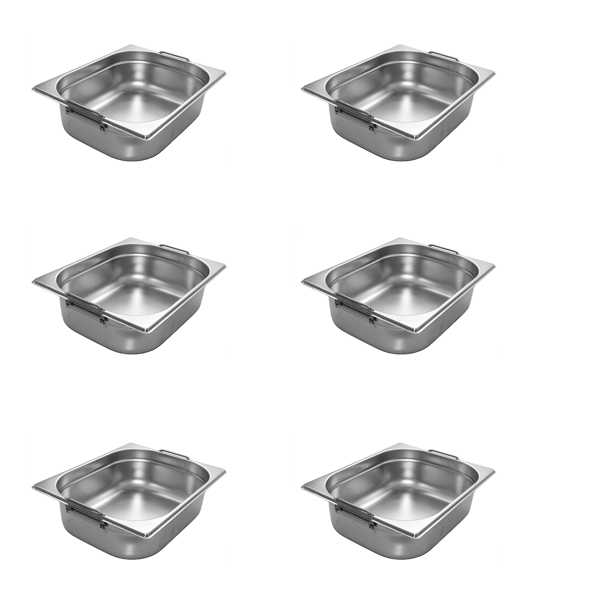 AcMax 6 Stück GN 1/2 Gastronormbehälter GN-Behälter Edelstahl 6,5 Liter Tiefe 100mm MIT FALLGRIFF