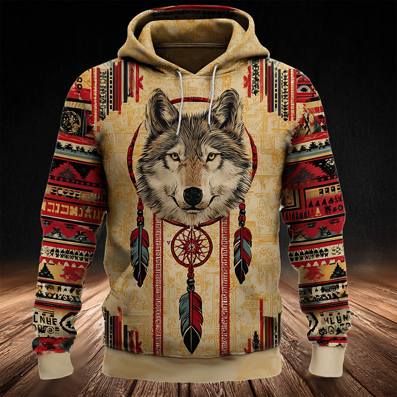 Men's Patchwork Tribal Hoodie Sweatshirt Fashion Ethnic Vintage Retro Long Sleeve Hooded Outdoor Home Yellow Red Purple Drawstring Fall Winter Designer S M L XL XXL XXXL