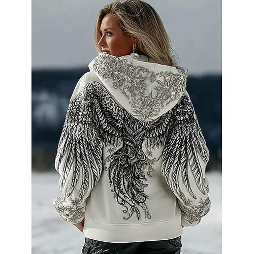 Women's Zip Up Hoodies Graphic Geometric Tribal Punk Active Vintage Long Sleeve Hooded Regular Tops Home Dailywear Casual Blue Purple Brown Green Fall Winter