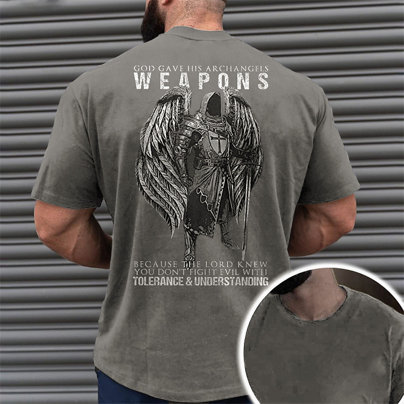 Mens Short Sleeve Graphic T-Shirt, Angel Warrior God Gave His Archangels Weapons Lifestyle Statement Tee