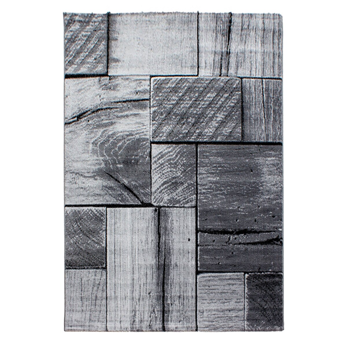 Carpetsale24 Teppich Wohnzimmer Moderne 3D-Holzdesign Schwarz - Grau 280 x 370 cm - Kurzflor, Schlafzimmer, Esszimmer, Küche