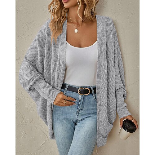 Per donna Felpa Cardigan Moda Streetwear Quotidiano Tinta unica A Coste Aperto davanti Lavorato a maglia Manica Lunga Top Regolari Maglia Ferie Uscire Weekend Nero Rosa Autunno Inverno