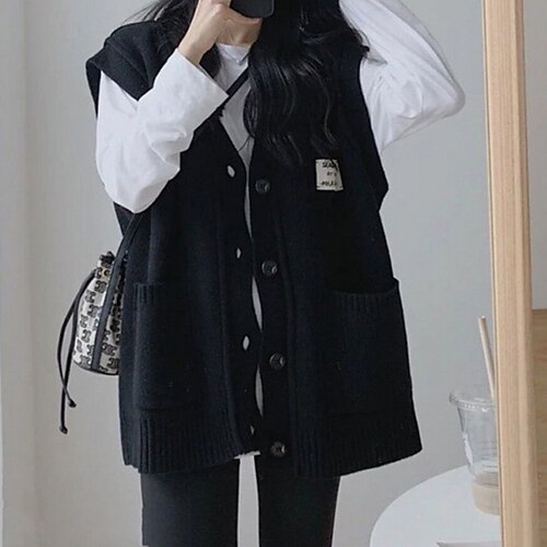 Per donna Felpa Cardigan Streetwear Casual Tinta unica Scollo a V Tasca Bottoni Lavorato a maglia Senza Maniche Top Regolari Maglia Quotidiano Ferie Uscire Nero Grigio Autunno Inverno