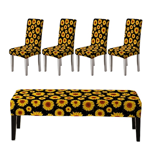 Set di fodere per sedie da pranzo e fodere per panche stampate, adatte per sedie da pranzo, include 5 pezzi, 4 fodere per sedie e 1 fodere per panca.