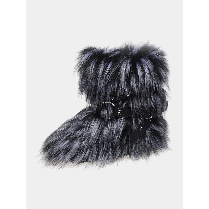 Women's Faux Fur Winter Boots with Belt Detail - Cozy Stylish Nordic Viking-Inspired Design, Perfect for Winter Wonderland, Christmas and Outdoor Adventures