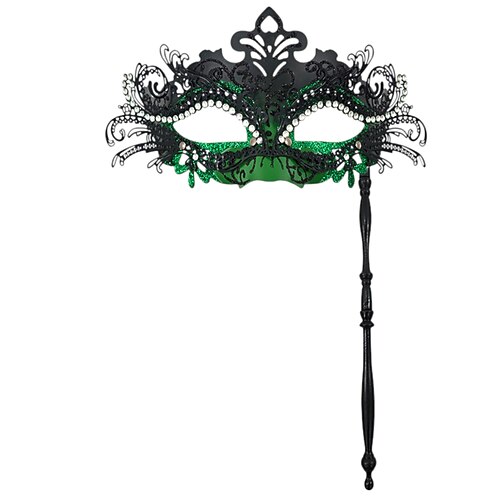 maschera da ballo da donna con strass e manico - elegante oro maschera rossa portatile per feste di Capodanno, balli eventi di danza formale