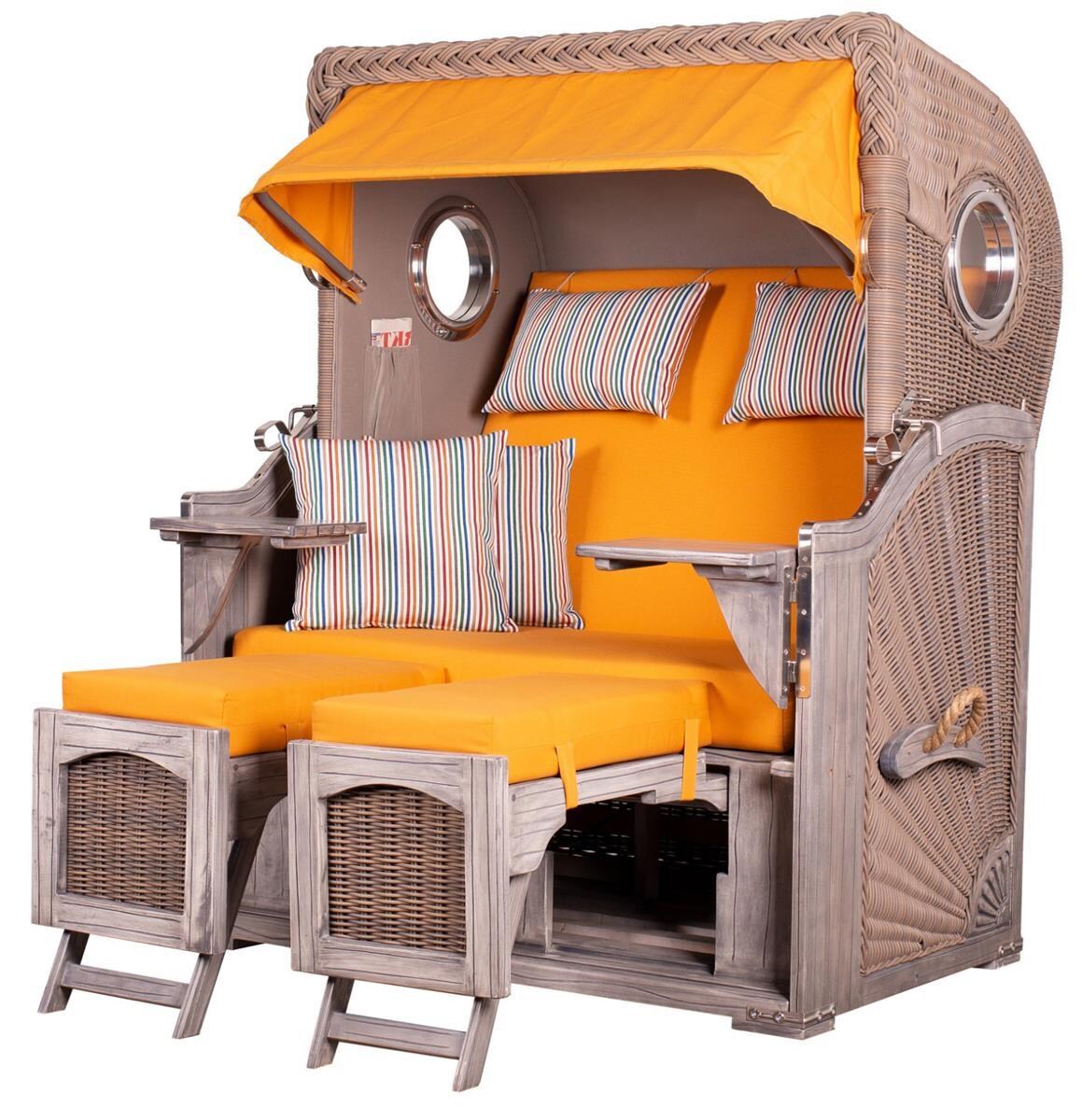 Mr. Deko Strandkorb - bene living - Ammersee Mahagoni Bullauge washed grey - PE Koboo grey - Modell 586