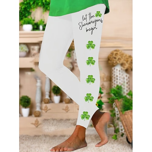 St. Patrick Damen Leggings Aktiv Urlaub Fashion Voll länge Hohe Taille St. Patrick Tag Grafik Kleeblatt-Druck Hochgeschnitten Komfort Outdoor Bequem Dehnbar Urlaub Formal Straße Schwarz Weiß Sommer