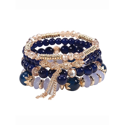 set di braccialetti da donna con perline di cristallo finto e accenti dorati, braccialetti elastici a strati in stile boho per feste, matrimoni e uso quotidiano