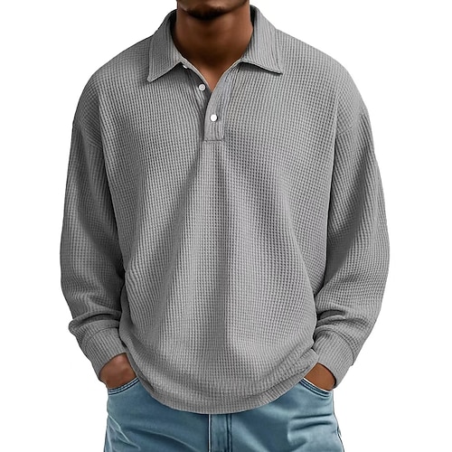 Per uomo Maglia da golf Polo da Golf Lavoro Casuale Bavero Manica Lunga Essenziale Moderno Semplice Bottoni Primavera Autunno Vestibilità regolare Nero Rosa Blu marino Blu Viola Marrone Maglia da golf
