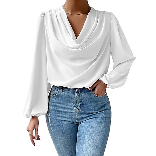 Per donna Camicia Elegant Elegante Raso/Satin Tinta unica Semplice Elegante Vintage Quotidiano Manica Lunga Manica a Lanterna Asimmetrico Top Regolari Lavoro Quotidiano Ferie Arricciato Patchwork