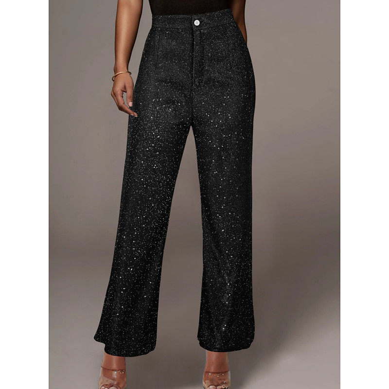 Women's Wide Leg Sparkly Pants Elegant Fashion Streetwear Full Length High Waist Sparkly Sequins Comfy Soft Comfortable Micro-elastic Outdoor Party Street Black Pink Blue Gold Spring Fall Regular Fit