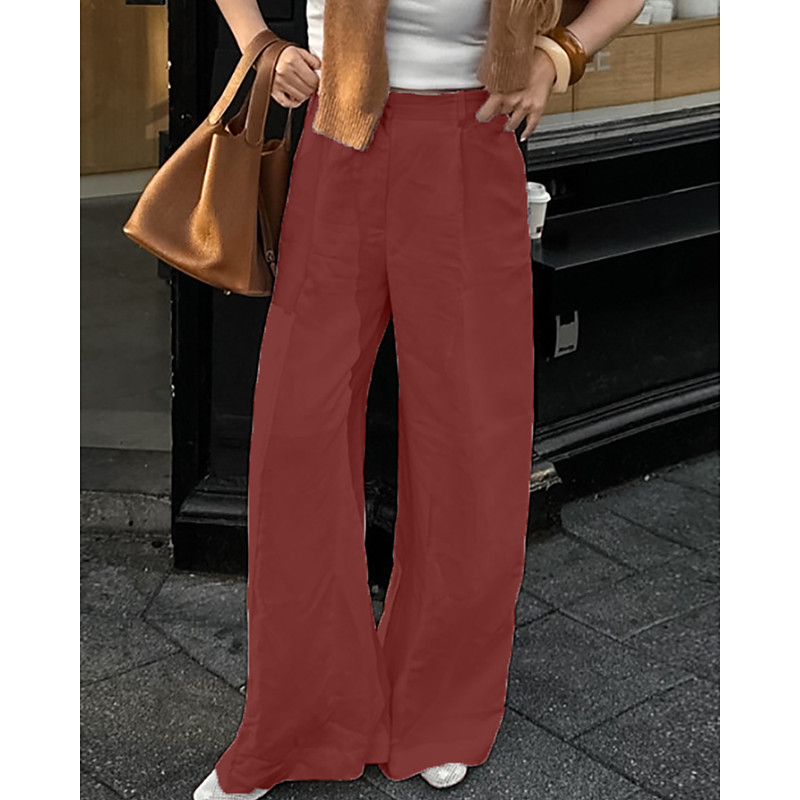 Women's Wide Leg Slacks Streetwear Casual Full Length Natural Plain Elastic Waist Comfortable Outdoor Vacation Street claret Depression Green Rust Apricot Fall Regular Fit