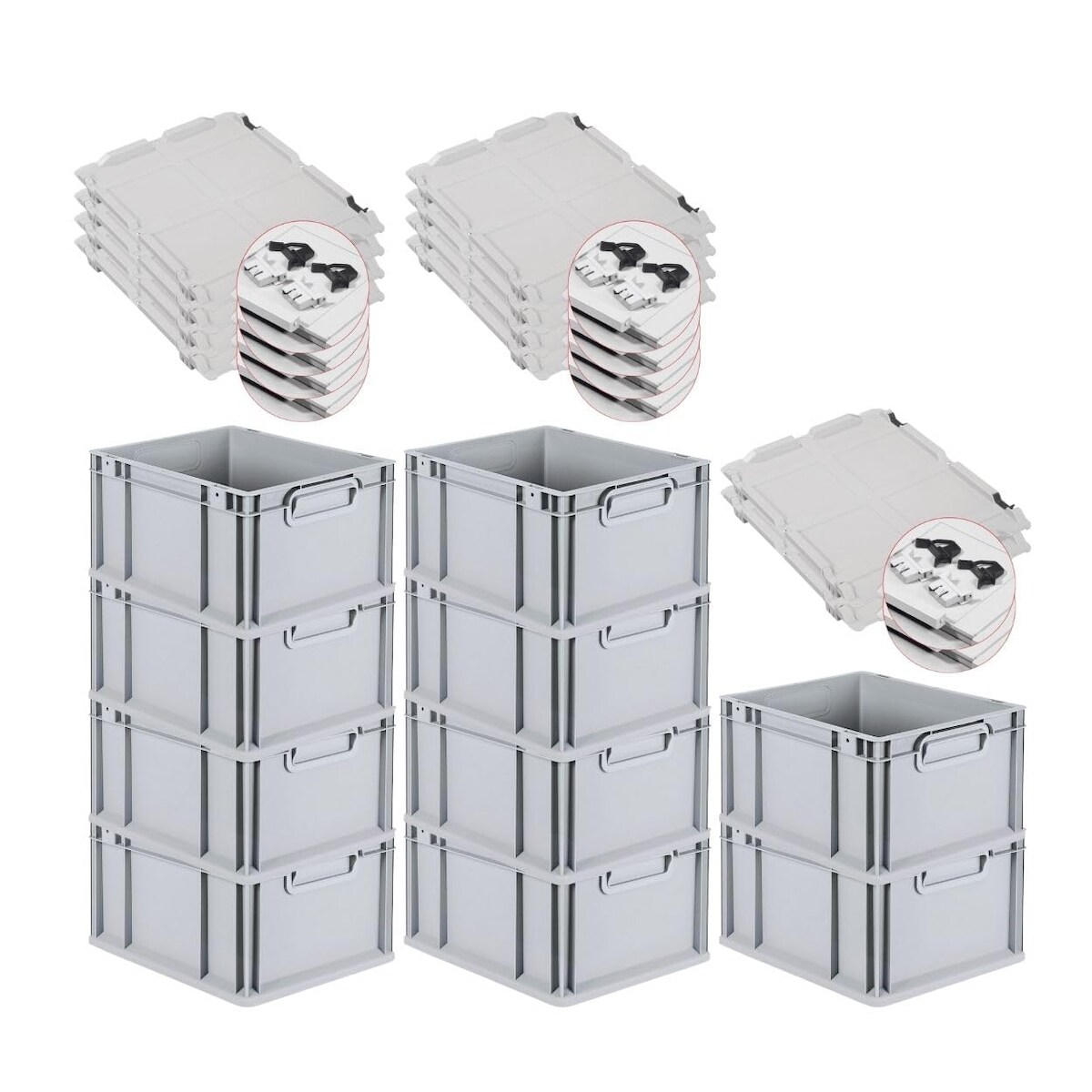 PROREGAL SuperSparSet 10x Eurobox NextGen Economy mit Scharnierdeckel & schwarzen Verschlüssen, Griffe zu, HxBxT 22x30x40cm, 20L, Eurobehälter, Box