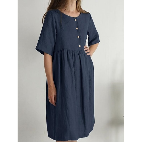 Per donna Abito Midi Abiti in cotone e lino Elegante Vintage Essenziale Vacanza Casuale Quotidiano Vestibilità regolare Semplice Manica Corta Scollo a V Bianco Blu Verde Cachi Estate Primavera