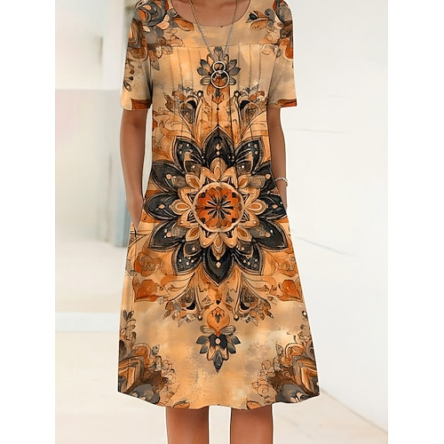 Per donna Abito Midi Abito a Tubino Vacanza Casual Quotidiano Vestibilità regolare Grafico Geometrico Manica Corta Girocollo Blu Viola Arancione Verde Estate Primavera