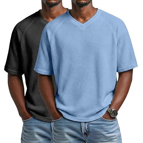 2 pezzi t-shirt waffle da uomo maglietta a maniche corte scollo a V estate tinta unita testurizzata moda designer casual 2 pezzi multipack maniche raglan casual quotidiano esterno bianco nero top