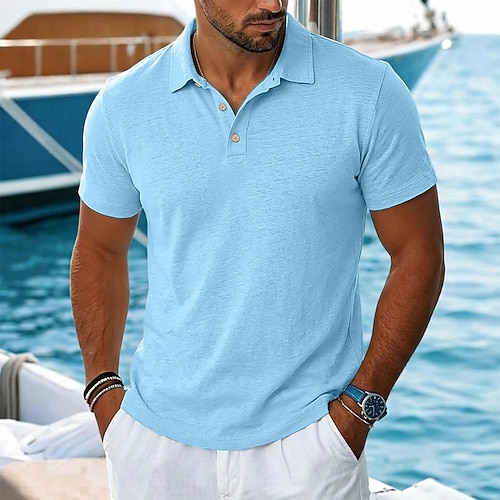 polo da uomo in lino casual vacanza classica manica corta vacanza moda tinta unita testurizzata bottoni estate primavera vestibilità regolare blu lago nero bianco verde chiaro rosa viola
