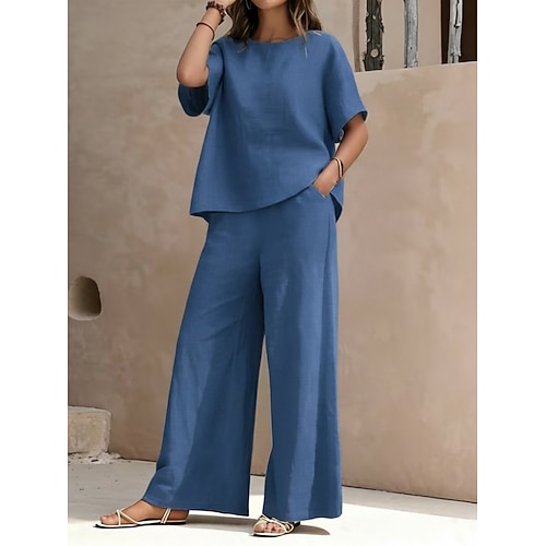 Per donna Set da due pezzi Set di Pantaloni Bolero Manica Corta Girocollo Semplice Moda Streetwear Casuale Quotidiano All'aperto Blu Nero Bianco Estate Vestibilità regolare