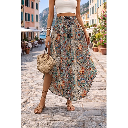 Per donna Gonna da vacanza Elegante Bohemien Moda Casual Midi Vita media Gonne Grafico Paisley Coulisse Elastico in vita Orlo irregolare Inelastico Quotidiano Vacanza Blu Nero Bianco Giallo Estate
