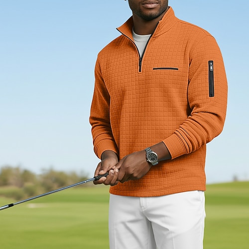 Per uomo Magliette Polo a Nido d'Ape Pullover Casuale Sport Outdoor Zip a un quarto Manica Lunga Moda Confortevole Con zip Tasca Primavera Autunno Interstagionale Autunno Inverno Vestibilit