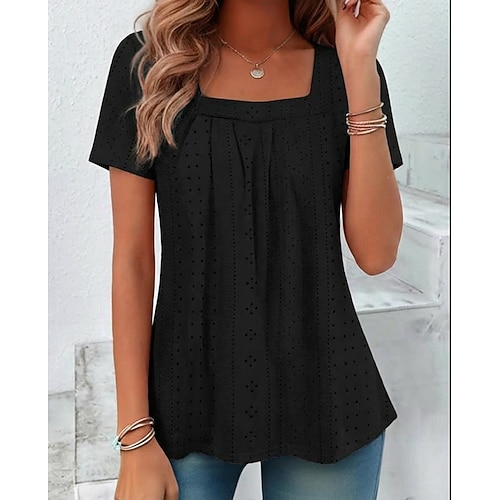 Per donna Top estivi Blusa Moda Carino Di tendenza Manica Corta Collo quadrato Top Regolari Quotidiano Uscire Blu Nero Bianco Rosa Viola Estate Primavera