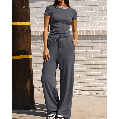 Per donna Set di tute e pullover Tuta da 2 pezzi Abiti da salotto Coulisse con tasca Tinta unita Set di Abbigliamento Sportivo Estate Primavera Grigio scuro Nero Allenamento in Palestra Jogging Corsa