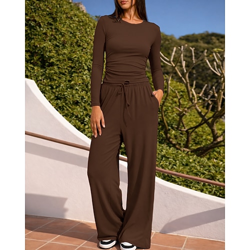 Per donna Set di tute e pullover Tuta da 2 pezzi Abiti da salotto Coulisse con tasca Tinta unita Set di Abbigliamento Sportivo Estate Primavera Lilla Nero Allenamento in Palestra Jogging Corsa