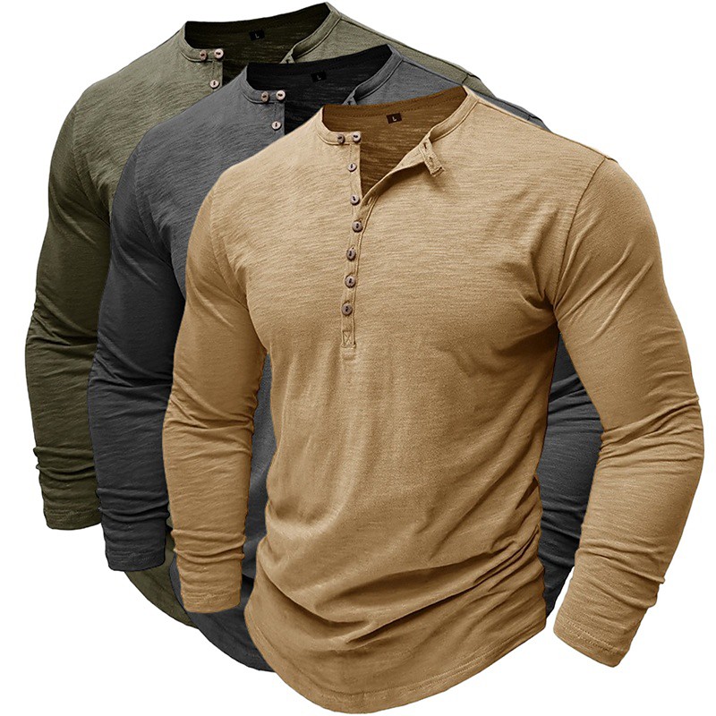 3pcs Men's Henley Shirt Tee Top Long Sleeve Solid Color Solid Fashion Daily Casual 3-Piece Multi-pack Henley Outdoor Casual Summer Spring Blue White Black Henley T-Shirt