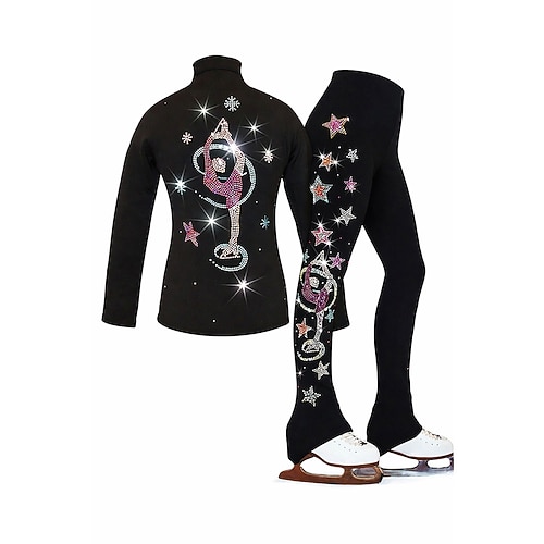 giacca da pattinaggio artistico con pantaloni, abbigliamento da pattinaggio sul ghiaccio da donna e da ragazza, nero, elastico, abbigliamento da pattinaggio per competizione, termico, caldo, con